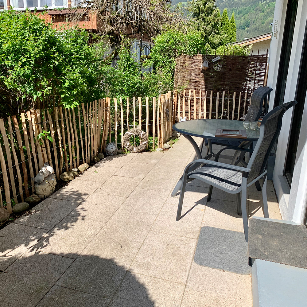 Die eingezäunte Terrasse ist der richtige Platz um den Tag bei einem schönen Glas Wein am Abend ausklingen zu lassen. So fühlt man sich wohl!